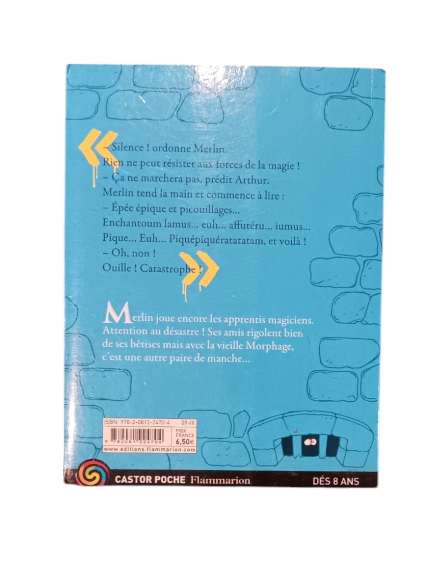"-Silence ! ordonne Merlin. Rien ne peut résister aux forces de la magie ! - Ça ne marchera pas, prédit Arthur. Merlin tend la main et commence à lire : - Epée épique et picouillages... Enchantoum lamus... euh... affutéru... iumus... Pique... Euh... Piquépiquératatatam, et voilà ! - Oh, non ! Ouille ! Catastrophe !" Merlin joue encore les apprentis magiciens. Attention au désastre ! Ses amis rigolent bien de ses bêtises mais avec la vieille Morphage, c'est une autre paire de manche..